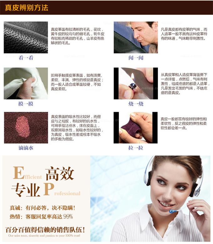 1.辦公沙發架:沙發內外架用粗實方木做成,穩固耐用; 2.辦公沙發座位:進口蛇簧支撐座包,坐墊內含弓字簧,彈性十足; 3.真皮沙發板材:用環保高密度中纖板制成,穩固難解絕不變形; 4.真皮沙發填充:采用AAA+公仔棉和海綿粒結合,公仔棉保證彈性,海綿粒保證形狀,兩者結合舒適耐用。 5.真皮沙發海綿:三層設計保證坐感,用不塌陷,無論仰坐還是側坐,促進血液循環,緩解疲勞和酸疼。